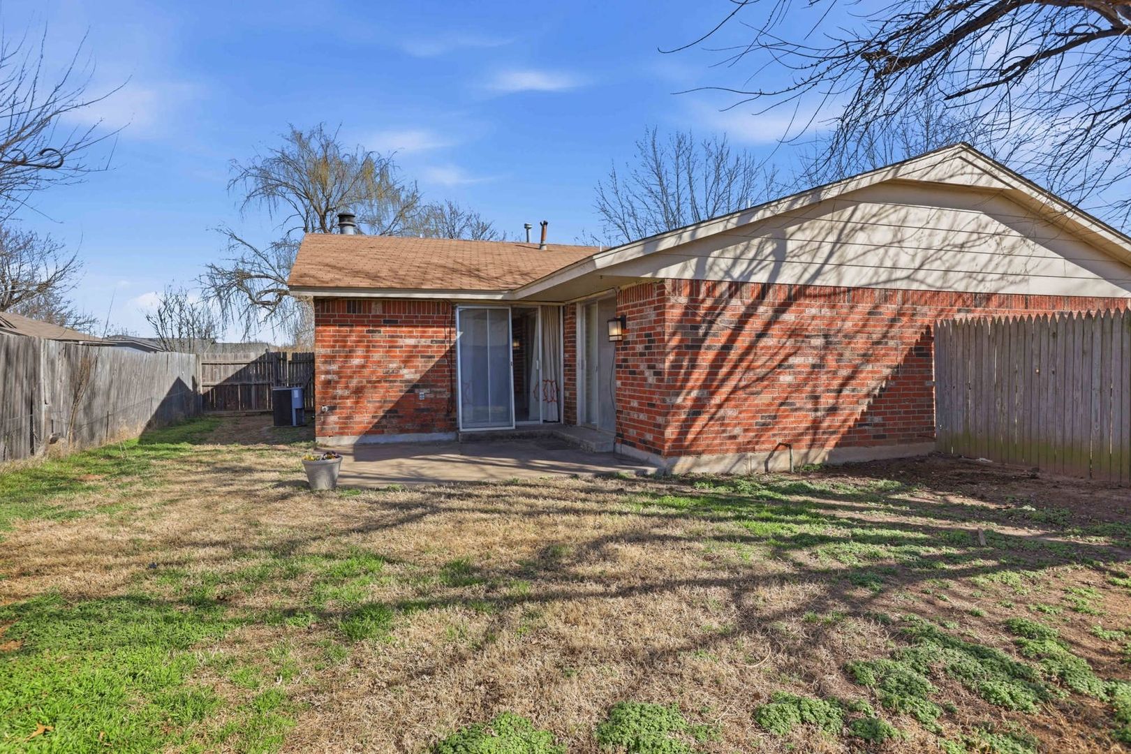 Cute 2 bed, 2 full bath, single car garage in Westmoore schools. Super close to OCCC and I240/I44. Inside utility room and garage door opener. Primary bedroom with walk-in closet. Both bedrooms with patio doors to the back porch.