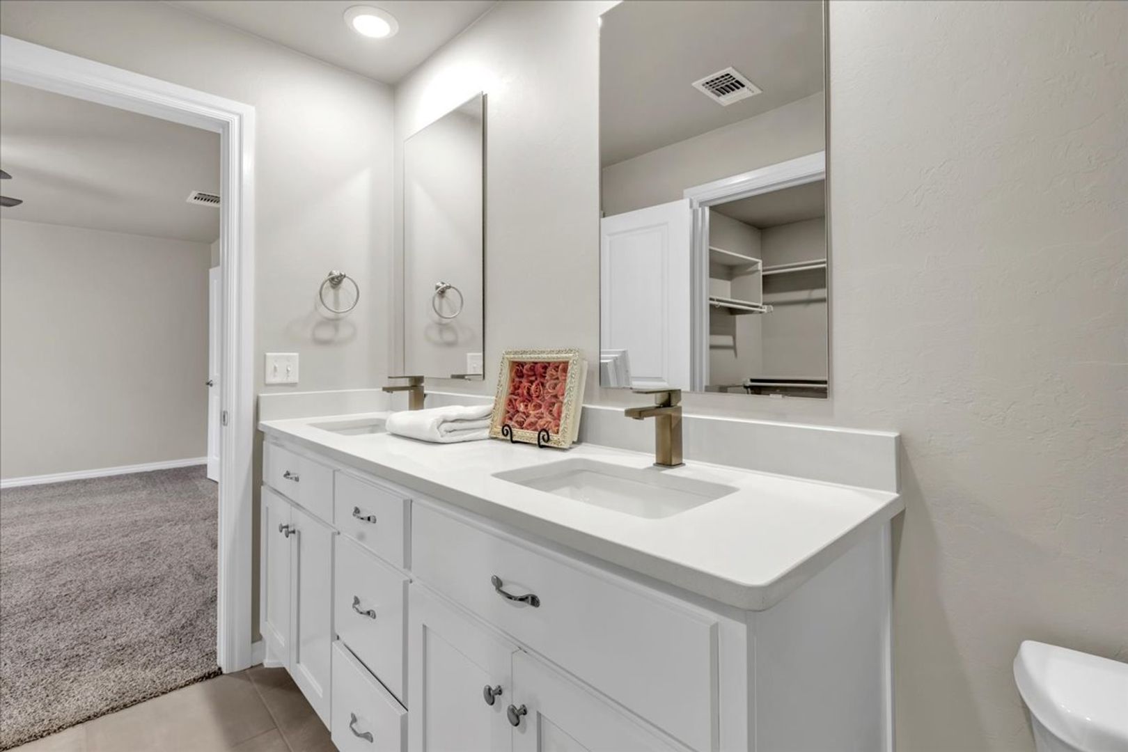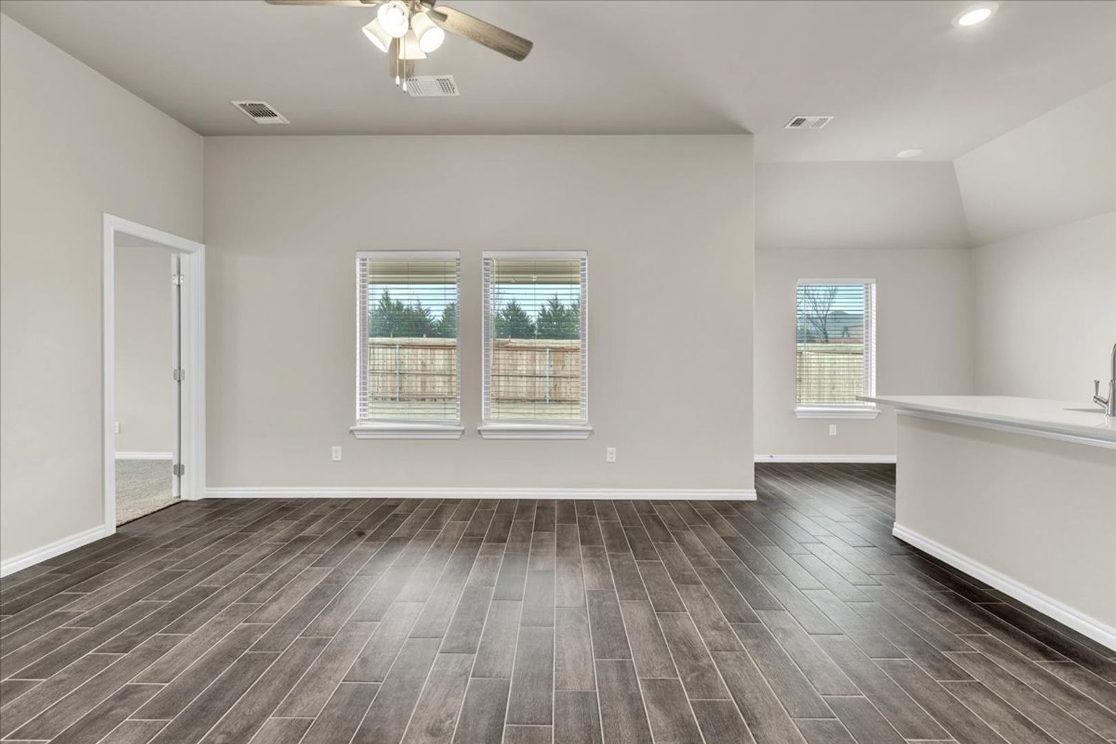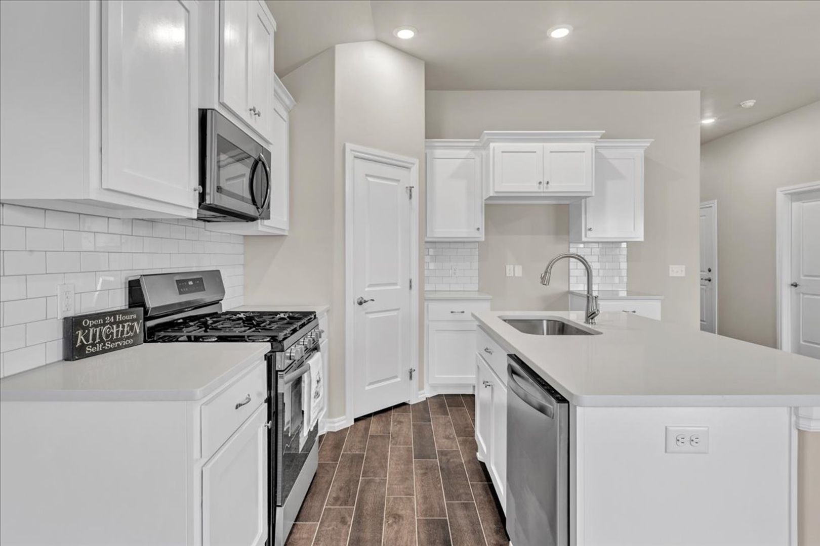 This floor plan includes 1,425 Sq ft of total living space, which includes 1,300 Sq ft of indoor living & 125 Sq ft of outdoor living space. Two car garage with a storm shelter installed. This home offers 3 bedrooms, 2 full bathrooms & a utility room! The great room presents a 10-ft ceiling with large windows, wood-look tile, a ceiling fan, hand-textured walls, & Cat6 wiring. The spacious kitchen includes beautiful countertops, stainless-steel appliances, custom-built cabinets, wood-look tile, a large corner pantry & a center island that holds a dishwasher & a roomy sink. The primary suite supports a high ceiling, lovely windows, a ceiling fan, Cat6 wiring & cozy carpet finish. The primary bath is attached & holds a dual sink vanity with an elegant countertop selection, satin nickel delta features, an elongated water saving toilet & a spacious walk-in closet. Outdoor living includes fully sodded yards and a smart home irrigation system. Other amenities include a tankless water heater, R-15 insulation, a fresh air intake system, & so much MORE! Don't miss the neighborhood pool for summer fun!!!
